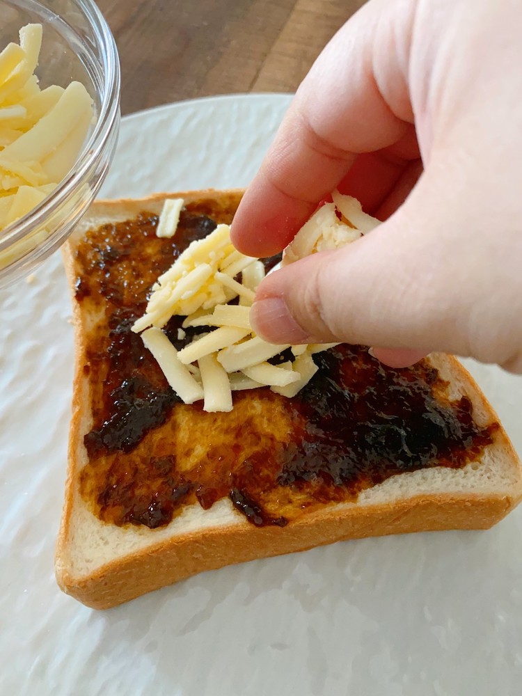 チーズを全体にかけ、トースター(1000W)でチーズが溶けるまで5分ほど焼く。