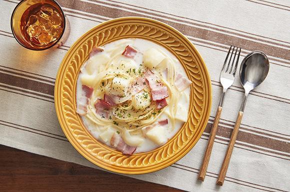 クリーミーさがクセになる、ホクホクじゃがいものスープパスタ♪